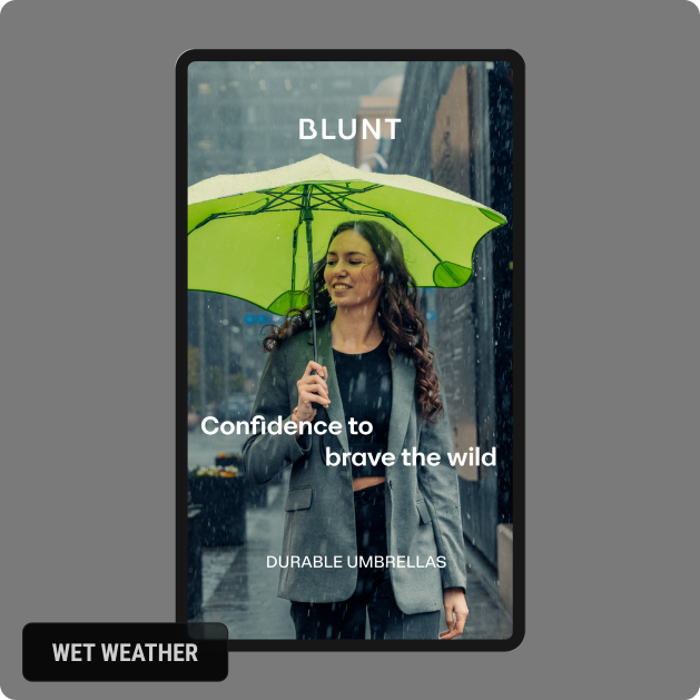 We built automated campaigns triggered by real-time weather conditions, activating Blunt's ads during periods of rain and wind when purchase intent was highest.